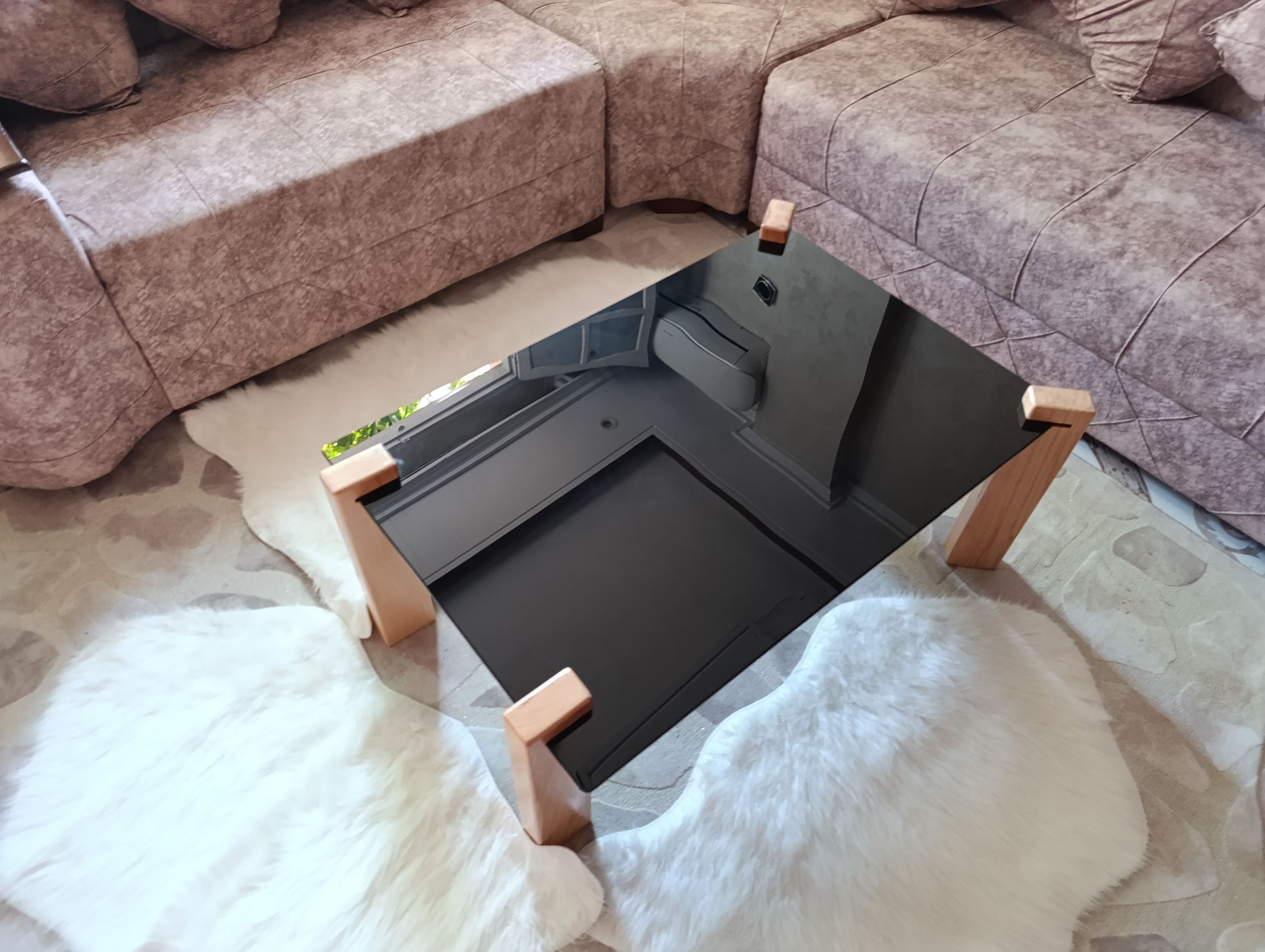 Hatre أناقة الأسود – طاولة زجاجية بأرجل خشبية راقية من